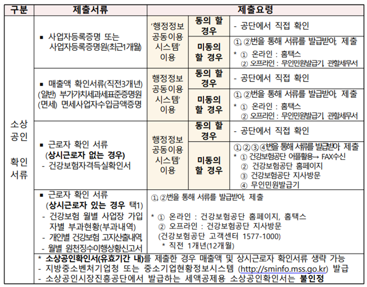 제출서류 : 자영업자 고용보험에 가입 후 소상공인 확인 서류 제출