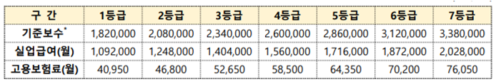 < 고용보험료 등급별 지원금액 >