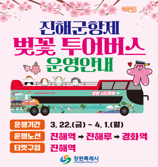 이번 봄, 진해군항제 벚꽃시티투어버스와 함께 더욱 특별하고 잊지 못할 벚꽃 여행을 떠나보세요!